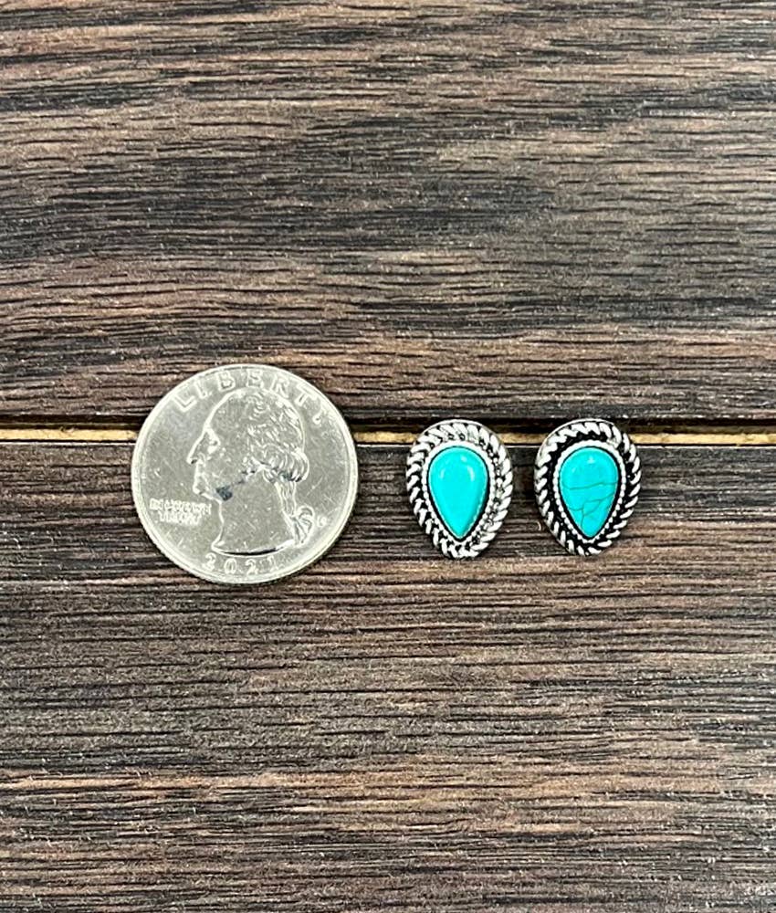 0.6" Long, 10mm Drop Turquoise Stud Earrings * Natural stones may vary in size, color or shape * 0.6" long stud earrings * 10mm turquoise * Light! Each earring 2 grams weight * Alloy metal, antique silver plate * Nickel, Lead & Chrome free