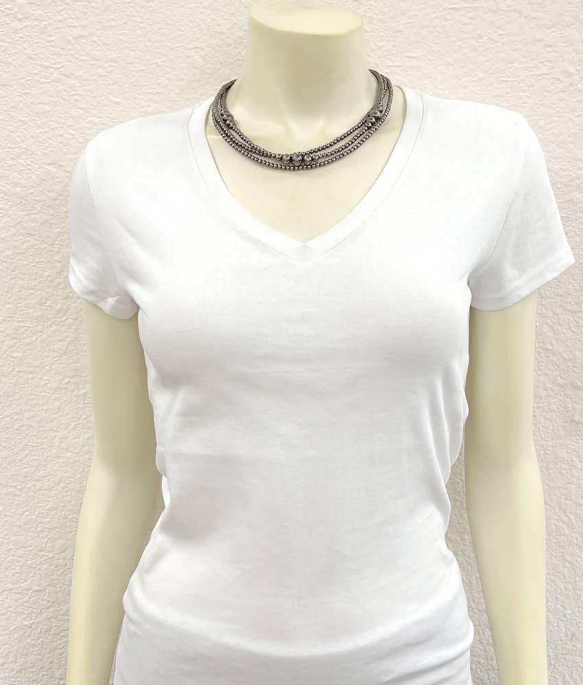 17" to 22" Long, 3-strand Tiny 4mm Polish Navajo Bead Necklace * 3-strand (15", 16", 17" long) necklace & 5" extender * 15" long, clustered polish navajo bead necklace * 16" long, 4mm polish navajo bead necklace * 17" long, 4mm polish navajo bead necklace * 25 grams weight * Nickel, Lead & Chrome free