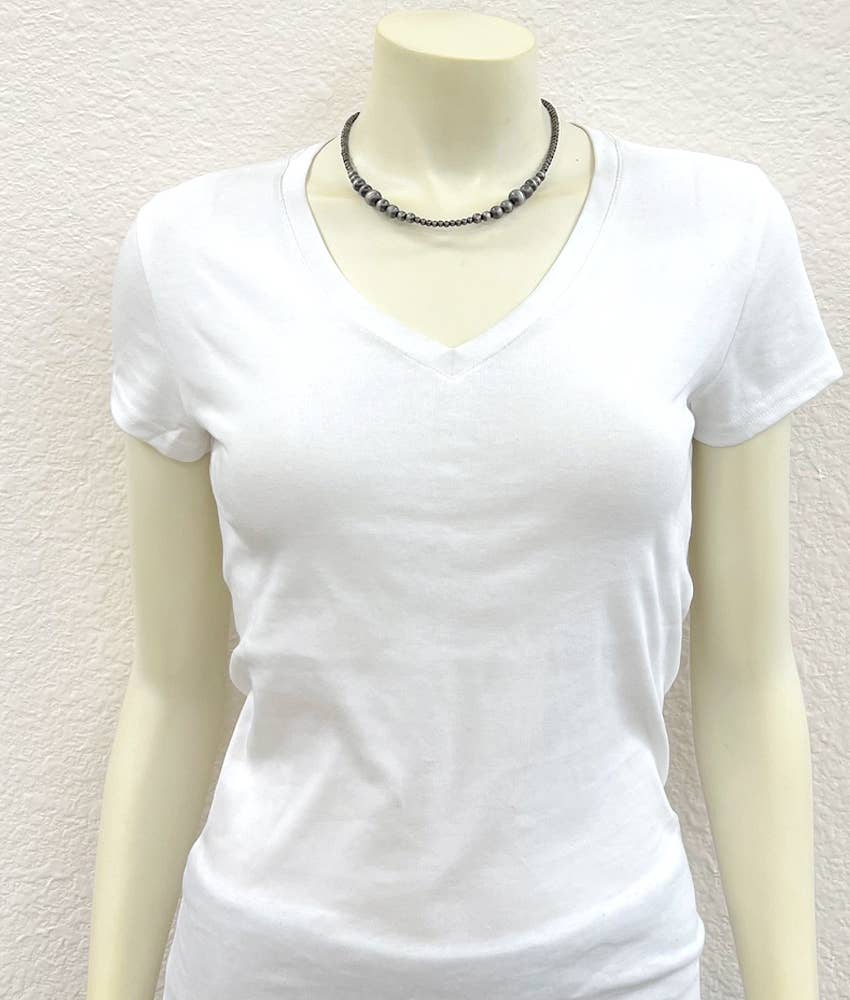16" to 21" Long, Handmade Clustered Navajo Bead Necklace * 16" long necklace & 5" extender * 4mm & Clustered 6mm, 8mm, 10mm navajo bead necklace * 15 grams weight * Nickel, Lead & Chrome free