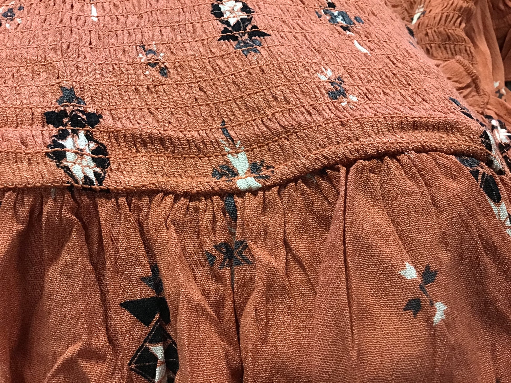 Shirts Women’s Aztec Geo Rayon Smocked Wrapped Ruffle Top