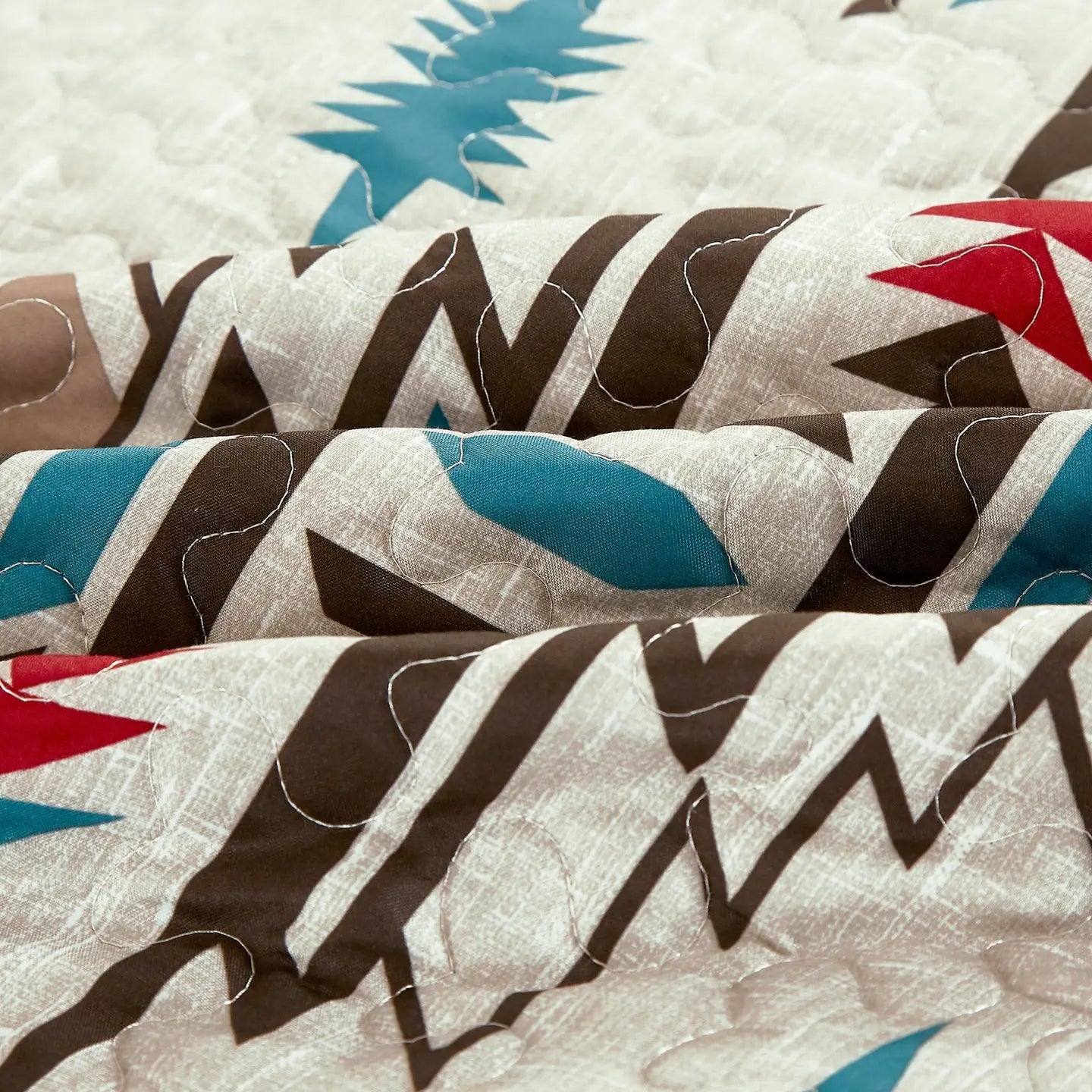 Southwestern style Aztec Quilt Set brings you warmth, delight and extravagance. High-quality fillers that are guaranteed to enclose you with a warm embrace are safely lodged in a quality cover that smoothly blooms to your touch