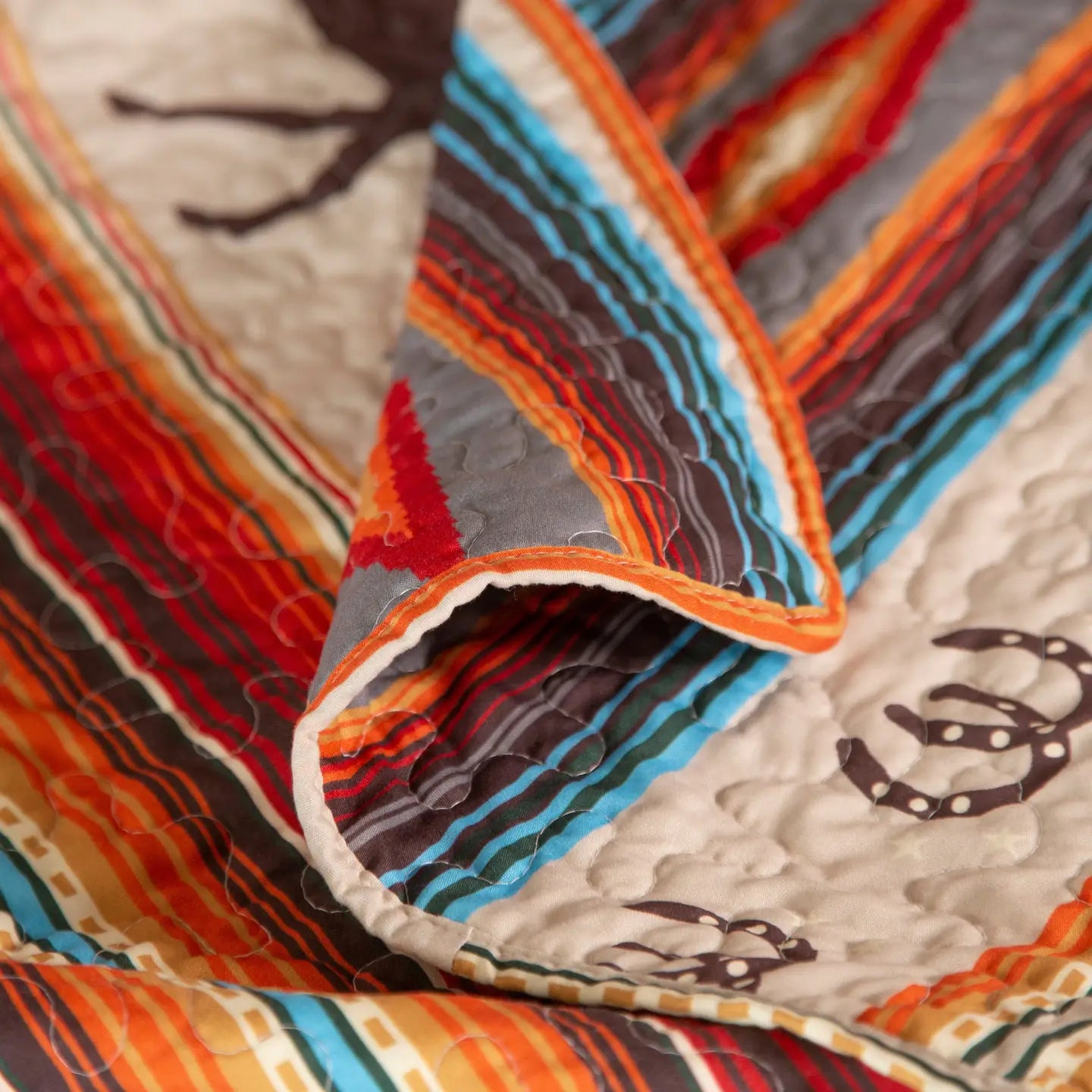 Escape to the Wild West with this Western Stripe Quilt Set. A perfect blend of luxury and ruggedness, the set is woven from superior cotton fabric, with an intricate stitched diamond pattern to provide comfort and warmth. An intricate blend of western-inspired stripes bring a striking and sophisticated touch to the room.