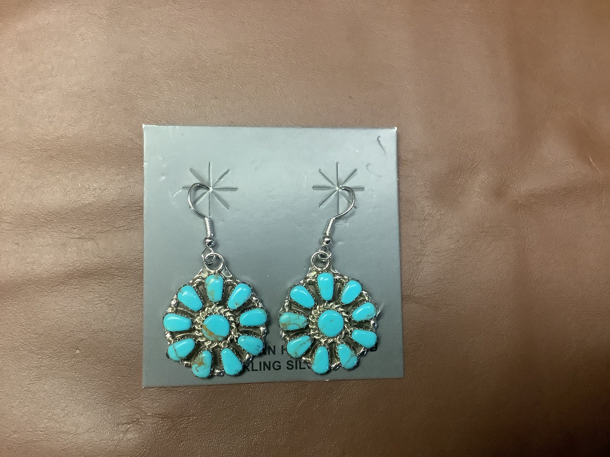 Jewelry Earnings Sterling Silver And Turquoise Flower