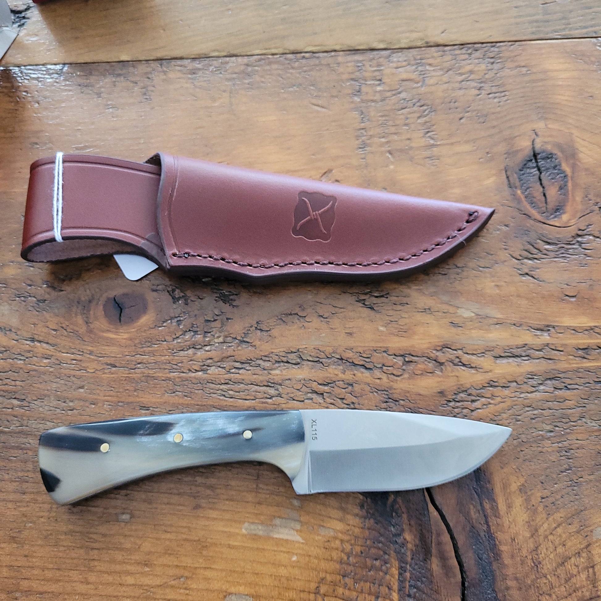 Hunting Knife with Leather sheath. Bone handle. 3” blade 6.5 inch overall length.