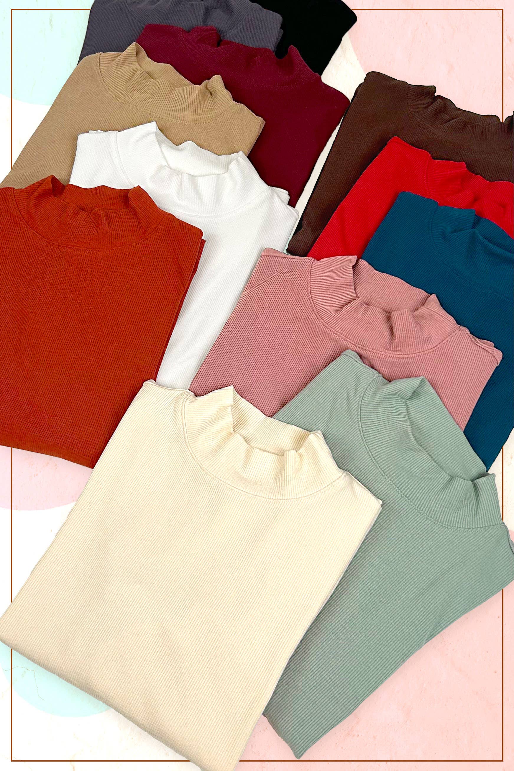 layering piece, long sleeve top, mock neckline, stretchy fabric, basic top, ribbed fabric, breathable, everyday wear, lightweight top