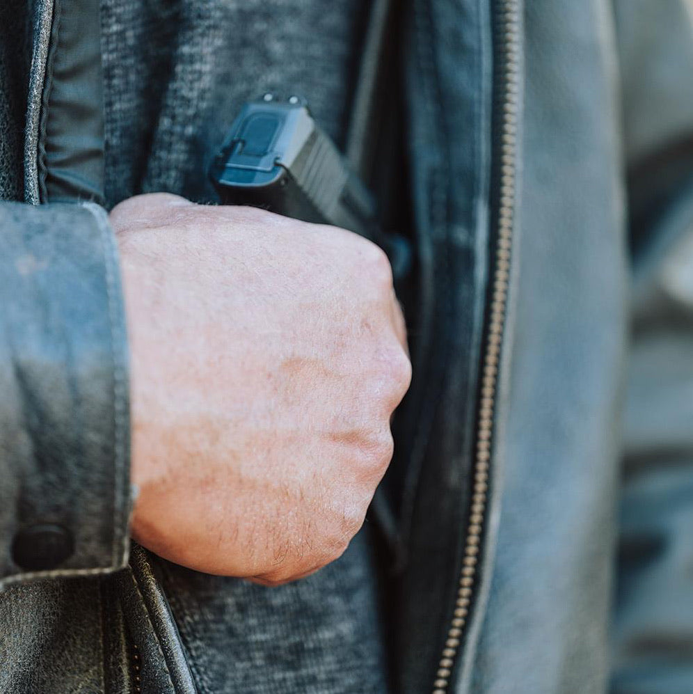 - Concealed carry pocket for a small to medium handgun