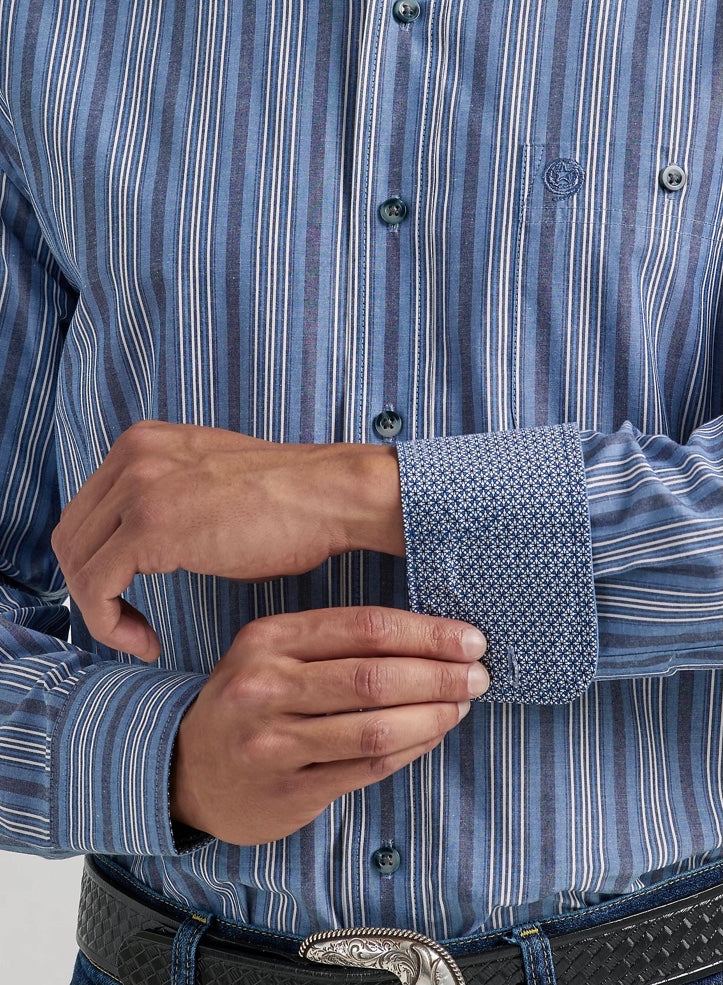 Take the spotlight in style wearing the George Strait™ One-Pocket Button-Down Shirt. This long-sleeve button-down features a straight back yoke, one chest pocket, and adjustable cuffs. With its relaxed fit, this classic collared shirt offers plenty of room through the shoulders and torso. Plus, it comes in a wide variety of colors and patterns.