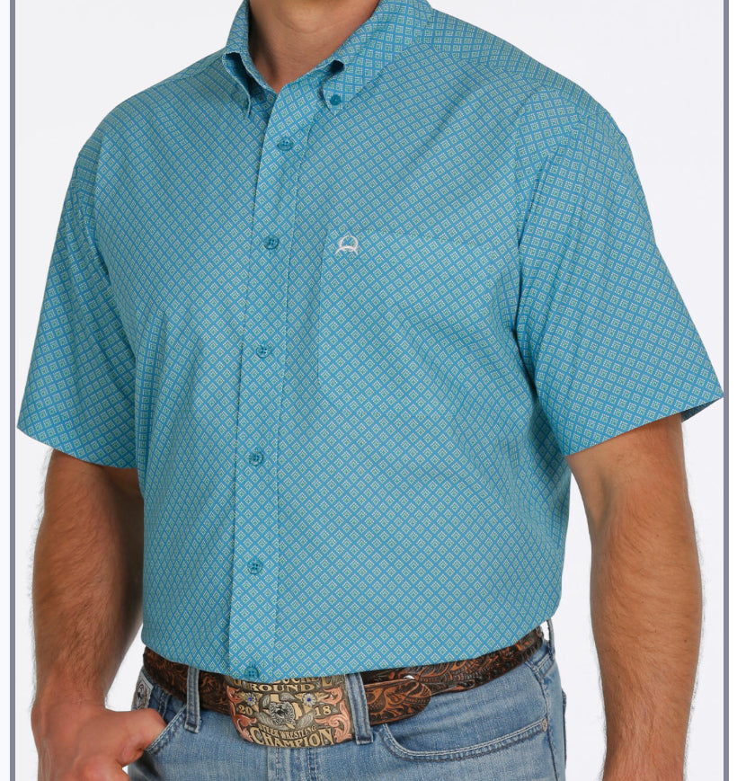 Shirts Men’s Cinch Arenaflex Short Sleeve Blue with Diamond Print MTW1704101