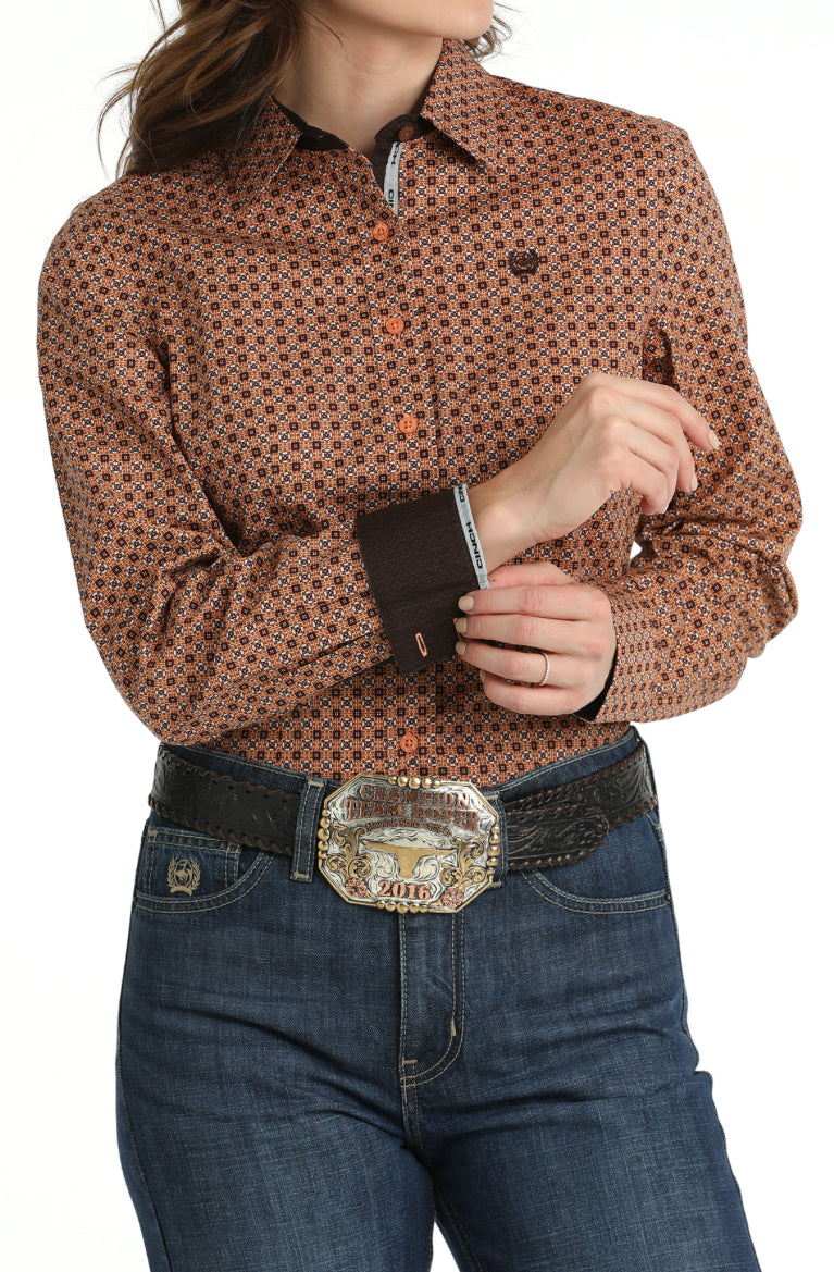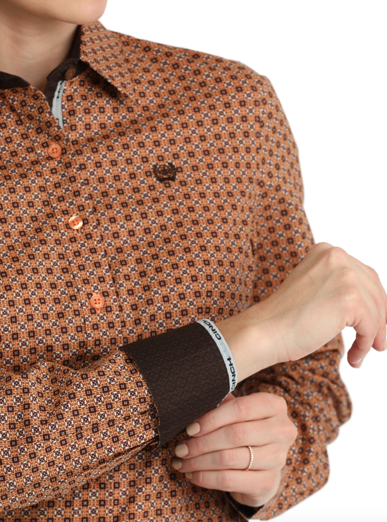 Shirts Women’s Cinch Long Sleeve Geo Print Coral MSW9165057
