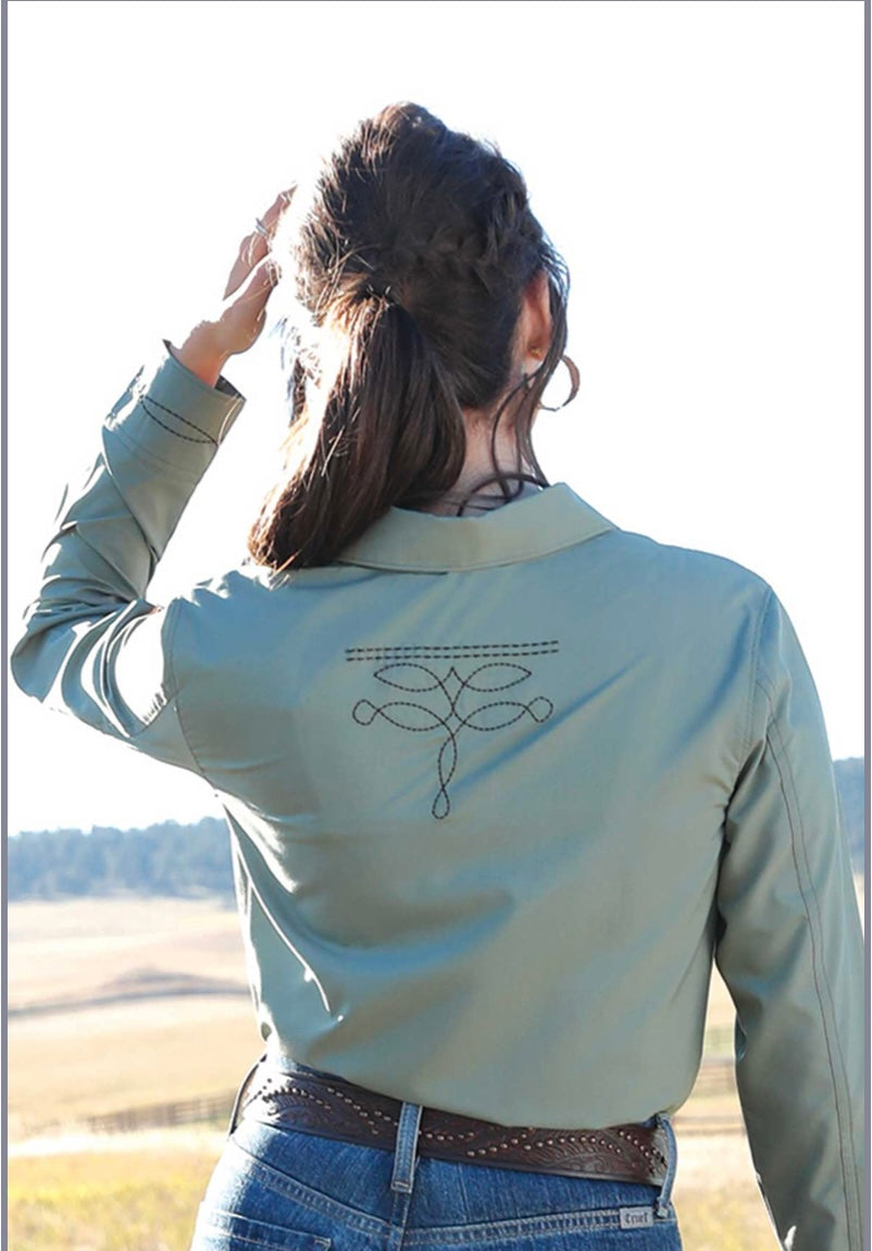 Long sleeve black Pearl snap retro boot stitch pattern shirt Green