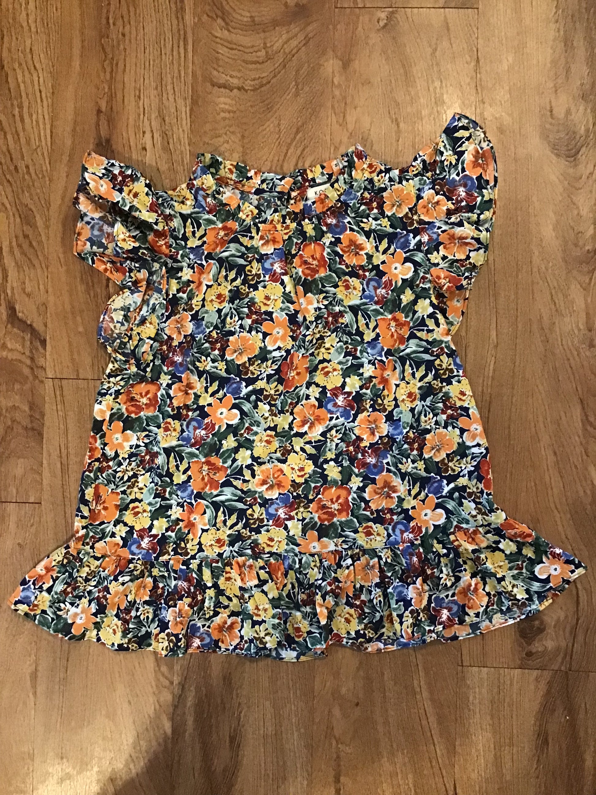 Floral Print Back Button Closer Ruffle Bottom Top