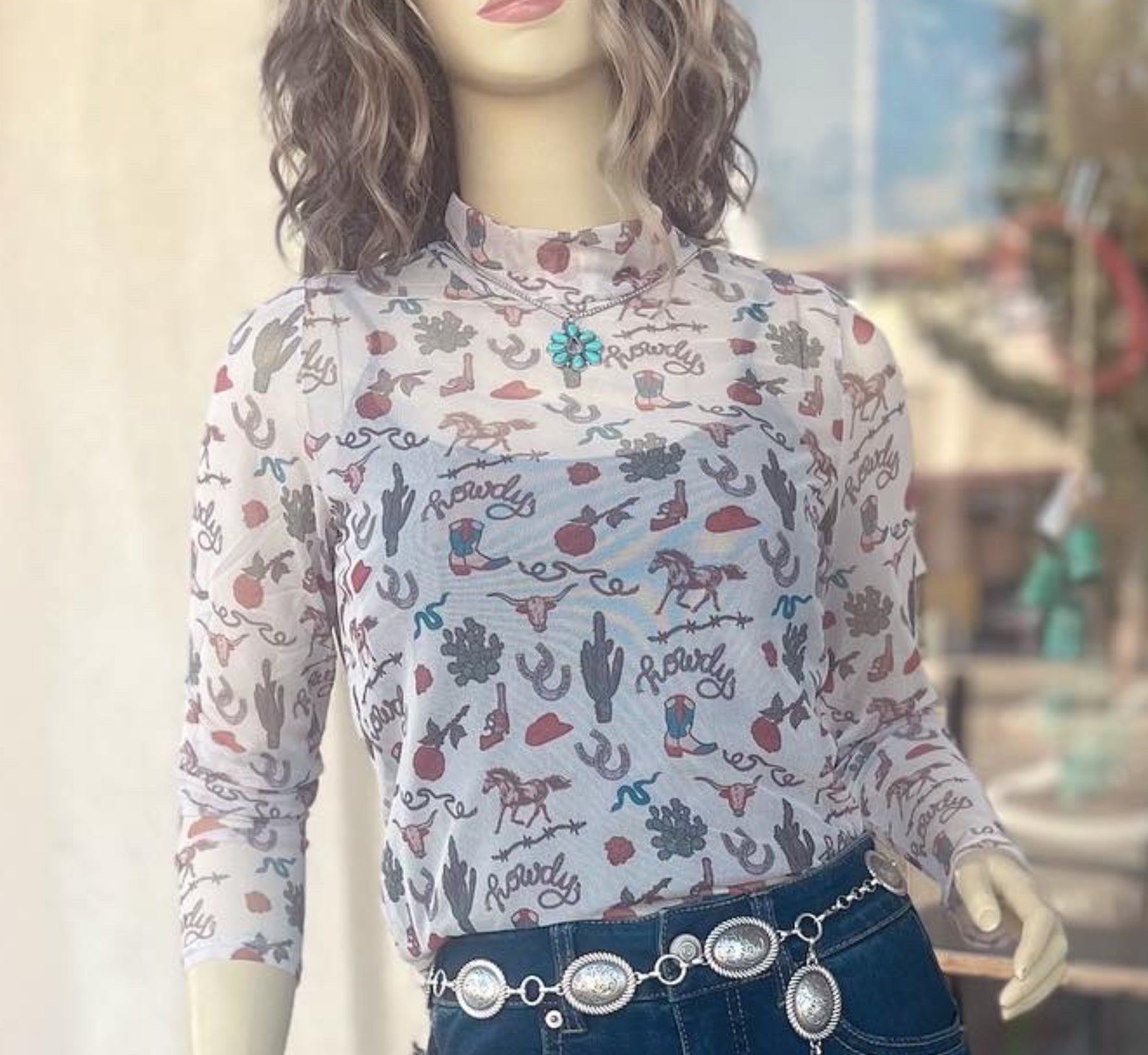 Tops Women’s Rock&Roll Western Print Mesh BW22T04557